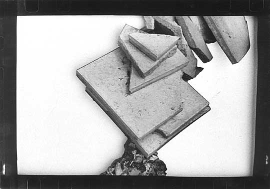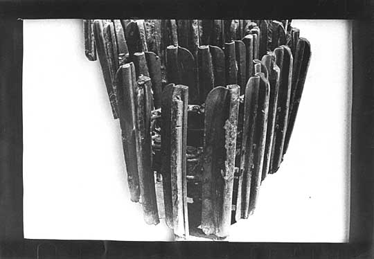 - Αφαιρώ μεγάλα τμήματα της Φωτογραφικής επιφάνειας (χαρτιού) με κοπίδι και ψαλίδι ώστε να μπει στο έργο η μεταφωτογραφική και μεταεκτυπωτική δράση-παρέμβαση. Εμένα όμως δεν ενδιαφέρει αυτό αλλά ο έλεγχος αυτής της δράσης. Το αποτέλεσμα είναι που μετράει. Πρέπει να κάνω το θεατή να δει πίσω από το χαρτί, πίσω από τη φωτογραφία, όπως βλέπουμε πίσω από τους όγκους του Henri Moore. (Τα πορτραίτα μένουν πίσω).