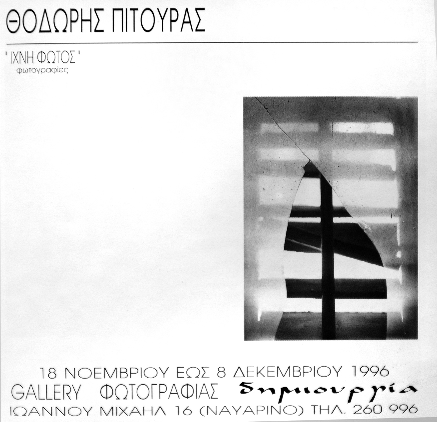 18/11 - 8/12 Eκθεση του Θοδωρή Πιτουρά με τίτλο: "Iχνη φωτός". Στη Γκαλερί Δημιουργία.