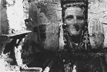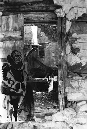 Mάσκες και κοστούμια θεάτρου επισκέπτονται τα χαλάσματα των σπιτιών που κάποτε έσφυζαν από ζωή και θυμίζουν περισσότερο φαντάσματα (ή μήπως τα χαλάσματα γίνονται το εναλλασσόμενο σκηνικό για να παιχτεί για μια ακόμη φορά η αρχαία τραγωδία;)